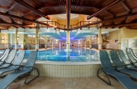 Allgemeine Informationen: Das einzige ***** Hotel in Hévíz liegt ruhig in einem großen Park und ca. 600 Meter vom Ortszentrum und vom Thermalsee entfernt. Das Wellnesshotel beeindruckt mit einer großzügigen und sportlichen Hotelanlage. Die Hotelgäste können ohne Gebühr folgende Einrichtungen nutzen: 3000 m² große Badelandschaft mit Innen- und Außenbecken (beide ca. 30° C), Thermalbad (36° C), Relaxbad mit Panoramafenster, Meditationsbecken, Whirlpool, großer Saunabereich mit finnischer Sauna, Aroma Lichtsauna, Infrarotkabine, Gartensauna und Dampfbad. Kräuterteestation. Außerdem bietet das Hotel kostenlos ein umfangreiches Sport- und Animationsprogramm (u.a. mit Nordic Walking, Wassergymnastik, Qi Gong, Yoga, Body fit usw.) an. Tennisplätze im Freien (April - Oktober) und ein Fitness- und Gymnastikraum können ebenfalls genutzt werden. Gegen Gebühr können im Hotel Fahrräder gemietet werden. Tägliche Live-Musik in der Shali Mar Bar. Kostenloses WLAN im gesamten Hotel.