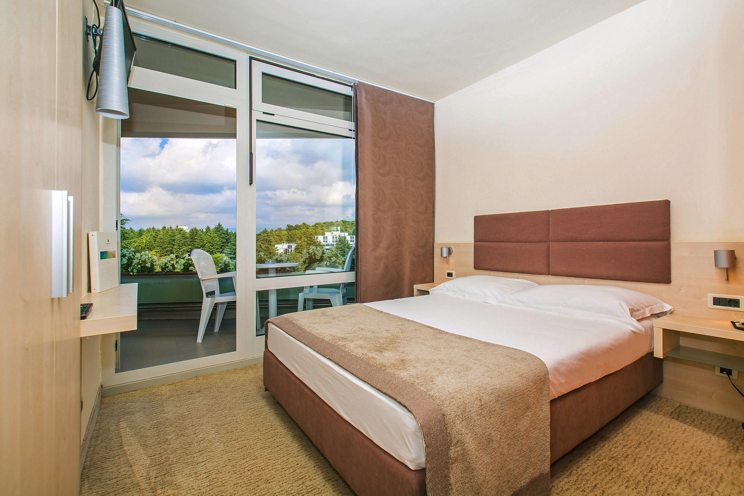 Ausstattung: Das Hotel verfügt über Restaurant, Caféterrasse, Cocktail-Bar, Fernsehraum mit Sat.-TV, Souvenir- und Zeitschriftenladen, Tanzterrasse, Meerwasser-Swimmingpool, Sonnenterrasse, Liegestühle (kostenlos, begrenzte Anzahl) und Sonnenschirme; Badetücher am Pool gegen Kaution erhältlich; Massagen gegen Gebühr. Kostenfreies WLAN im gesamten Hotel. Beim Hotel finden Sie 4 Sand-Tennisplätze, Tischtennis, Fahrradverleih, Minigolf, Segel- und Ruderbootverleih sowie im nahegelegenen Sportzentrum Plava Laguna eine Tauchbasis und vieles mehr.