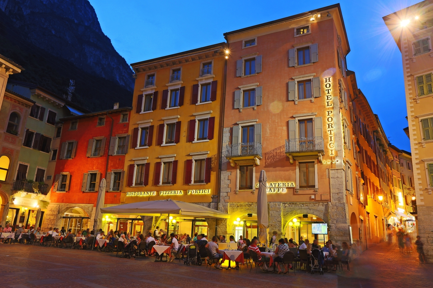 Das Hotel Hotel Portici Romantik & Wellness befindet sich in zentraler Lage in der Altstadt von Riva del Garda – nur wenige Gehminuten vom Seeufer entfernt. Die gemütlich eingerichteten Superiorzimmer bieten höchsten Wohnkomfort mit direktem oder seitlichem Blick auf den Platz Piazza III Novembre.