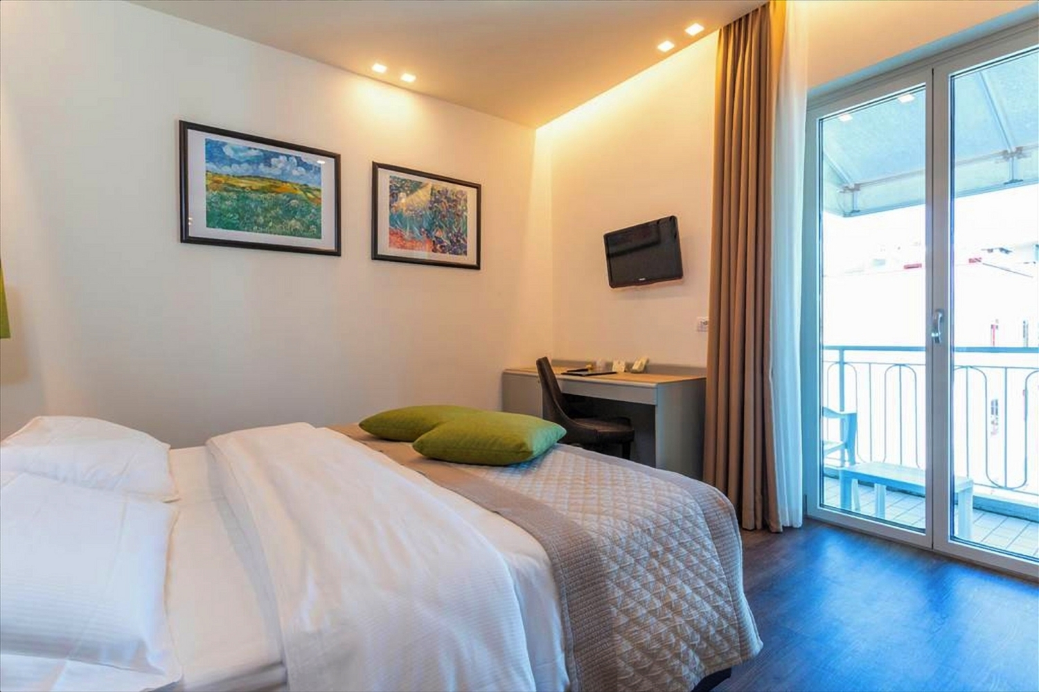 Ausstattung: Das schöne traditionsreiche Haus bietet 24-Stunden-Rezeption, Aufenthaltsraum mit TV, Café, Restaurant im 4.Stock mit schöner Aussicht, WLAN, zwei Aufzüge, zwei Swimmingpools im 5. Stock mit Sonnenliegen und Poolbar, Dachterrasse mit Bar, kostenlosen Fahrradverleih sowie einen Privatstrand mit 1 Sonnenschirm und 2 Sonnenliegen pro Zimmer (im Reisepreis inklusive).