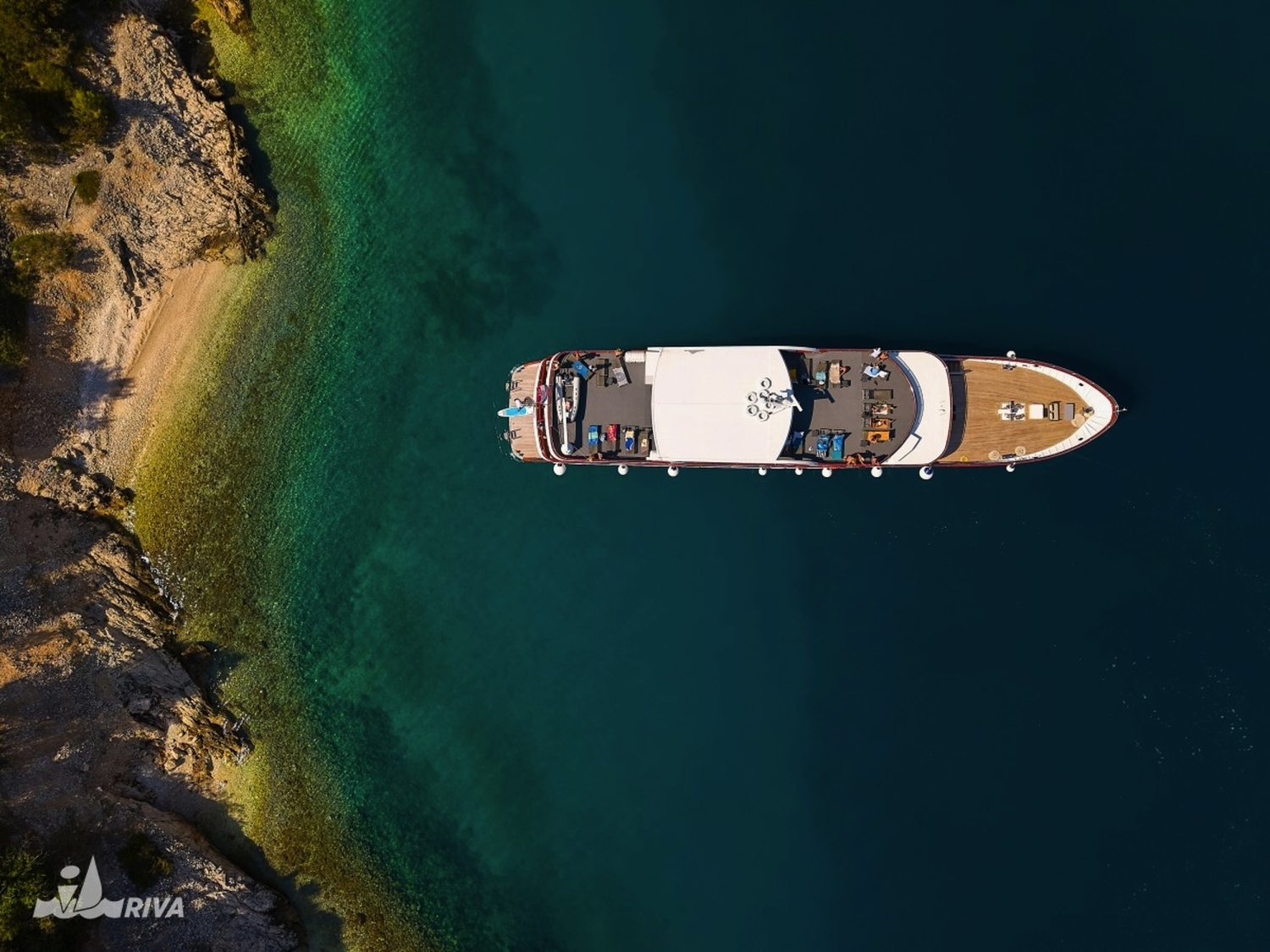 Motorsegler mit Holz- oder Stahlrumpf. Sonnendeck mit Sitzmöglichkeiten und klimatisierter Salon. Die Kabinen unter Deck und auf dem Haupt- bzw. Oberdeck sind mit Dusche/WC, Klimaanlage und meist Etagenbetten ausgestattet. Einzelkabinen sind Doppelkabinen zur Alleinbenutzung. Aufpreis garantierte Doppelkabine Hauptdeck: € 160,- pro Person. Aufpreis Kabine Premium (ohne Etagenbetten): € 170,- p.P. Sie buchen Halbpension (Frühstück und 3-Gang-Mittagessen, ohne Getränke) inkl. 1 x Captain’s Dinner.